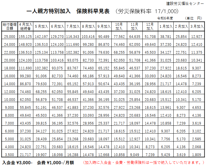 ※ 労災保険料は、国で定めらており毎年4月に改定されます。どの組合で手続きを行っても